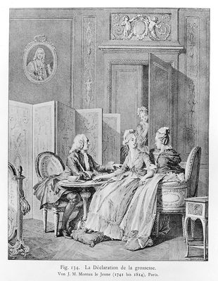 Credit: M0017290: "Declaration of pregnancy" by J. M. Moreau. Source: Wellcome Collection.