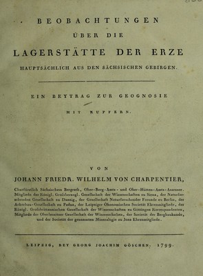 Credit: Beobachtungen über die Lagerstätte der Erze hauptsächlich aus den sächsischen Gebirgen. Ein Beytrag zur Geognosie / Von Johann Friedr. Wilhelm von Charpentier. Source: Wellcome Collection.