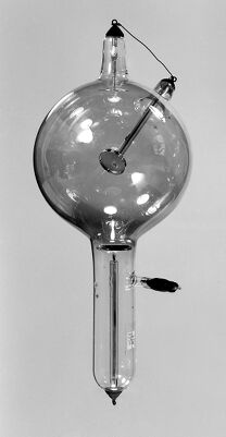 Credit: M0015840: Two x-ray tubes with anode and cathode, c.1900. Source: Wellcome Collection.