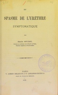 Du spasme de l'urèthre symptomatique / par Emile Spire.