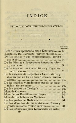 Constituciones del Real Pontificia Universidad de San Gerónimo, fundada en el Convento de San Juan de Letran, orden de predicadores, de la ciudad de San Cristobal de la Habana, en la isla de Cuba.