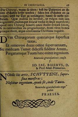Credit: Dissertatio chirurgica de superfluis ex noxiis quibusdam in chirurgia ... / [Johann Heinrich Schütte]. Source: Wellcome Collection.