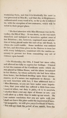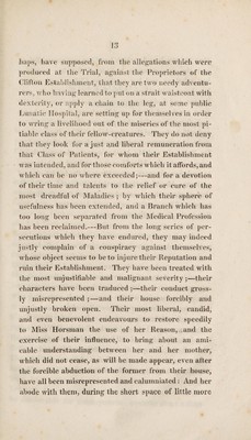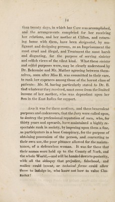 Credit: A plain narrative of facts relating to the reception and treatment of Jane Horsman, at the establishment at Clifton, of which Dr. Belcombe and Mr. Mather, are proprietors ; with a few preliminary observations on insanity in general : and some remarks on ... the late trial, Horsman against Bulmer and others / By Alexander Mather. Source: Wellcome Collection.