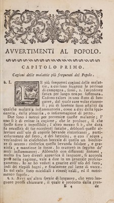 Credit: Avvertimenti al popolo sopra la sua salute / Opera dalla francese nell' italiana favella recata e d'alcune annotazioni arricchita dal Dott. Giampietro Pellegrini ... Aggiuntovi il saggio sullo scorbuto di mare del Sig. Addington. Source: Wellcome Collection.
