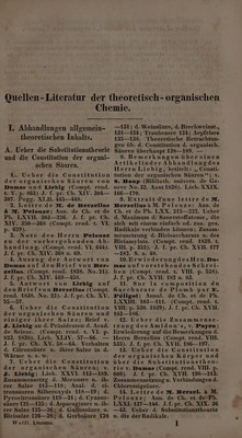 Quellen-Literatur der theoretisch-organischen Chemie, oder Verzeichniss der vom Anfang des letzten Viertheils des vorigen Jahrhunderts bis zum Schluss des Jahres 1844 ausgeführten chemischen Untersuchungen über die Eigenschaften und die Constitution der organischen Substanzen, ihrer Verbindungen und Zersetzungsproducte. Mit steter Berücksichtigung der Literatur der Chemie in ihrer Anwendung auf Agricultur, Physiologie und Pathologie / [Emil Theodor von Wolff].