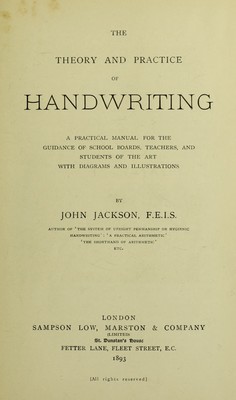 The theory and practice of handwriting : a practical manual for the guidance of school boards, teachers, and students of the art, with diagrams and illustrations / by John Jackson.