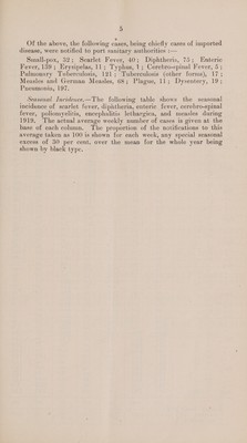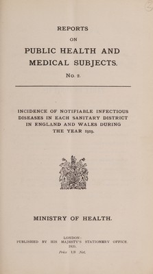 Incidence of notifiable infectious diseases in each sanitary district in England and Wales during the year 1919 / Ministry of Health.