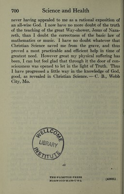 Credit: Science and health : with key to the Scriptures / by Mary Baker Eddy. Source: Wellcome Collection.