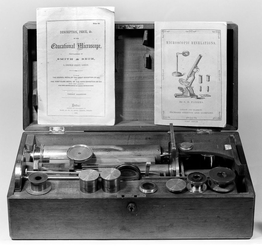 Credit: M0018152: Compound achromatic microscope by Smith and Beck, 1857. Source: Wellcome Collection.