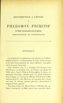 Credit: Contribution à l'étude du phlegmon primitif du tissu cellulaire sous-pleural (péripleurite de Wunderlich) : thèse présentée et publiquement soutenue devant la Faculté de médecine de Montpellier le 28 février 1903 / par Antoine Kanazirsky. Source: Wellcome Collection.