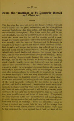The Hastings and St. Leonards pamphlet : being abstracts of reports of the London and local press on the new drainage system of Hastings and St. Leonards : also scientific and statistical information in reference to the water supply, health and death-rate, and climate of the borough of Hastings / by John Charles Savery.