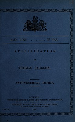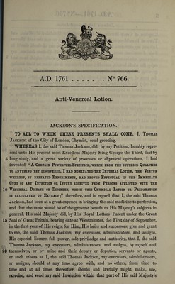Credit: Specification of Thomas Jackson : anti-venereal lotion. Source: Wellcome Collection.