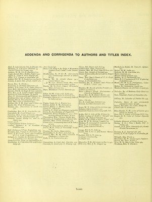 ![ADDENDA AND CORRIGENDA TO AUTHORS AND TITLES INDEX. Abel, E. [ed.] Scholia Vet, in Pindar. 38o. Alemany, T. Life of St. Dominic 34. A nciens Poctcs lie France 9Q4. Andrew, \V. R. Sii- H. Raelntrn 651; Anglo-Jewish Hist. Exhib./'«/^z-.f 931. Appel, C. Leliend. Peire Rogier aZi. Arias, J. L. Voynt;e to Australia 376. Ashley, Prf. W. J. Feudnlism 250 (note). Ashton, J. [ed.] Adv. ofCpt. Smith 362. Becon, Rev. T. Works 2. Bannister, S. William Paierson 236. Barker, J. G. [Am.] N. Y'. State Lodge ■j'^. Beer, Rud. .Spicilcgium Jurenaliiim en 3. Beesley, Prf. E. S. Engl, &^Sea Qr,-;{H0te). Beet, Rev. J. A. Lord's Supper i,<)(note). Bertram De Situ Britann. 47 (note). Blass, F. Nermeneitti/c and Paliiogr. 861. Bodleian Lib. Cat. ofSansc. MSS. S16. Brandl, Prf. A. .Mi.l.-En-lis/i Lit. 933. Bray, iilr^. Life of Stotliard 6^1. Bridges, Dr. j. H. Engl, and China 257. Biicke, Dr. /i 'alt Wliitman 730. Burney, Jas. Discoveries in South Sea 37S. Cambridge, Rev. O. P, Arachnidw. 556, Carruthers, R. p'ossil Plants 522. Cawdi'ay, Rob. Treas. of Similes ')6(note). Christison, Sir R. Aiitobioi^rtiphy 55S. Churton, Archd. Philip Hi, and iv, of Spain 774. Cicero 927-8. (Congregational Union Lectures 2. Ciirtius, QuinCtis: tr. of G.nithier of Chatillon 994. Dall Mollusca of Polar Ex/'cdition 517. I Dampier, Cpt. Voyage to .\ustralia 376. ! Dana, J. D. Crust.. Cenl.^ ami Zoophytes\ of U.S. A-r//. Ex/n-dition 517. | Deligne, J. .-Inalyse Romans de Raoul d. Cninlrai i t d. l'>ernier c^i^-^, liialectical See. Rept. on Spiritualis7n 81. Doubleday, A. Charlottesville and Gettys-^ Doci K'yan 840. Dozy -r de Song + de Goije + Houtsman Lryden Acad. Catal. Codd. Orient. Sib. Dunferndine, E. of Sir R. Abercromhy 424 ; erroneously entered in [nde.r as 324. Duncan, Dr. D. Asiatic Races 343 ; Loivest Races 374. J. M. Lex. Homer.-Pind. 880 ; erro- neously entered in Index as 800. Diirrie, D. S.+Isal). [Ams.] Wisconsin Hist, Library 703. Dyer, Thistleton Charles Daiivin 532. Elliot, Sir W. Coins ofS. India 475. Erskine, Andrew Uour in Corsica -j-zi. Eutropius Opera 923 ; erroneously entered hi Index as 925. Kagan, Louis .?/>-..-!. Pnniszi ii-z. Farrar, Archd. F. W. Hebrews 25. Faucit, Helen—v, Martin, Lady. Faiiry.P. .Salioly (fii, [■'cnelon, F. Dial, 0}i Eloquence 94 (note). Ferry, B. Recollections of Pugin 666. Fitzgerald, Percy William iv, 423 ; erro- neously entered in Index as 421. Fitzstephen, W'm. Thomas Becket 410. Fla.\man, J. Compositions to Homer Z-jS, Flinders, Mat. Terra Australis -^yZ, Floras 923 ; erroneously entered in Index- as 925. Fliigel, G. Oricntalische IISS, 816. Fricse, H. F. Story of Florentine .Sculp- tor 656, Fronius, Fr. Sdclis. Bauernlelen. FronmCillcr, G. F. Peter and Jude •.•4. Furness, Mrs. H. H. [Am.) Concord, to Shakesperes Poems 762. Fyffe, C. A. Universities 421. Gianandrea, A. Cant, pop. .Marchig. 137. Gianiiini, G. CantiJ>op, d. Montng. 137. Given, Prf. Ilosea and foci 24. Goldstiicker, Thos. Panini 827. Gordon, Mrs. M. Prof. Joltn Wilson 726. Grace, Jas. Afinals of Ireland d,is,. Grant, Ca\ei%\\ox\h.y Rural Life in Bengal 348. Gray, Asa [Am.] Plants of U. S, Expl. Expedition 517. Grego, J. Roivlandson 651. Gunthcr, Dr. A. Reptiles and Pisces of H,M.S. 'Alert' Hawkes, H. Recoil, of John Pounds 301. Hilfhert Lectures y. Hole + Di.\on + Lloyd Maintenance of Church of Ene;land 99. Hood, Rev. E. P. Robert Raikcs 206. Humphreys, H. Noel Rembrandt 660. Idler, The 7S1. Ive, A. Canti pop, Ostriani 137. Iverson, A. [.\m.] Secession 7S5. Jeans, W. T. Lives of Electricians 593. Julianns Opera Gram:u. 930. JuynboU+Gaal Lexicon Geograph, 3o8. Keble, Prf. J. Life of Bp, Wilson 61. Kellett Zoology of H.M.S. ' Herald' 517. Kiepert, H. Map of Palestine Killick, A. H. fidbk. to .Mill's' Logic'm. King, W. F. H. Bishop !'enables q^, Kleinert, P. Jeremiah &^ La/nent. 24, Klvig, C. F. Corinthians 24. Kno.\, John Selected IVorks 2. Lange, Prf. G. V. John 24. Latirie, Prf. S. S.—v, also .Scolus Novan- ticns. Lechler, Prf. G. V. Acts 24. Leip'^i^er Studien B64. Leodegar 901. Macaiilay, T. B., I.,d. essay on Barii e 441. M'Curdy, Rev, J. E, Haggai 3^, MacLeliose, Sophia H. Tales fr, Spenser 762. Maine, Sir H. India 421. NLallock. W. H. Lucretius ito. Maries Judaism 120. Maurus Oficra Gramm, 930. Medley. D. J. Parliament 259. Miers, E. J. Crustacea of U.S. Exploring Expedition 517. Moule, Prf. H. G. C. Philippians, Colos- siatis, and Philemon 24. Midler, Fr. Siebenbiirg, Saj^en 142. Murdoch Alamm. etc. of Polar k..xped,},\-], Nicholas, Bp. of Methona Holy Ghost 112 (note), Nott, Eliplialet Death of Hamilton 785. O'Clery, M. Calendar of Native Sts. 434. Pathclin, Farce de 997; erroneously entered in Index as 996. Patton, Prf. (Am.) t'r. Chas. Hodge 66. /.r (A.-S. poem) 957. Rhys-Davids. T. W. Coins of Ceylon 475 ; article on Buddh 14. Rieu, Dr. C. Catal, of Persian ,VSS, 835. Rogers, E. T. Coins of Tuluni Dyn.isty 475. Schlotht Meteorol, of Polar Exfied, 517. Shairp, J. C. -t- Tate H- Reilly Prf. J. Forbes 506. Sinnett. A. P.'.IIme, ISlavatsky ■]% ; Occult World Phenomena 78. Tasman, A. J. Journal 37S, 376. Torres, L. V. de Voyage to . lustralia 37(1 Whltgift, .^bp. Works 2, Whitiaker, Dr. \V. Disput,agst. Papists■} Wilson, Bp. Thos IVorks 2. Wise, H. A. [Am.]/(i/i« Tyler ^do, Wgolston, Rev. '1'. Works 2. In XXVI](https://iiif.wellcomecollection.org/image/b21693985_0102.jp2/full/800%2C/0/default.jpg)