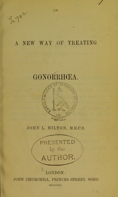 Credit: On a new way of treating gonorrhoea / by John L. Milton. Source: Wellcome Collection.