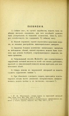 Material k voprosu o miasnom poroshkie : usvoiaemost' azotistykh chastei ego i obmien i usvoiaemost' azota pishchi pri kormlenii miasnymi poroshkami zdorovykh liudei : dissertatsiia na stepen' doktora meditsiny / Nikolaia Maslennikova ; tsenzorami dissertatsii, po porucheniiu Konferentsii, byli professory V.A. Manassein, A.P. Dobroslavin i privat-dotsent A.I. Sudakov.
