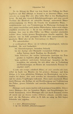 ![Teilweise wirken diese Faktoren direkt auf die Schweissdrüsen, teilweise mittelbar durch Vermittlung des Nervensystems. Letzteres vermag aber auch selbständige Einflüsse auszuüben (psychische Schweisse; Hyperidrosis und Anidrosis bei zentralen und peripheren Erkrankungen des Nervensystems). Wir sehen bei Kranken allgemeine Schweisse auftreten: 1. zuweilen dann, wenn Bedingungen vorhanden sind, welche ana- log sind denjenigen, die auch beim Gesunden Schweiss hervorrufen; so bei starken tetanischen Krämpfen durch erhöhte Muskelarbeit und Herz- aktion (im Gegensatz hierzu finden sich übrigens bei epileptischen, hyste- rischen und anderen Krämpfen keine oder wenigstens nicht der geleiste- ten kolossalen Muskelarbeit entsprechende Schweisse); bei allen mög- lichen krankhaften Zuständen, welche mit starker Erregung, besonders Angst, oder mit heftigen Schmerzen verbunden sind; ferner zuweilen (nicht immer *)) unter dem Einfluss von heisser Lufttemperatur, warmen Bädern, feuchtwarmen Einpackungen oder schweisstreibenden Medika- menten (Pilocarpin; Flores Tiliae; Kamillen). — Auch das Morphium erzeugt bei manchen Schweisse; 2. bei schwerer Atemnot, Dyspnoe] diese ist meist mit Schweissen verbunden. Auf diese Weise treten zuweilen Schweisse auf bei Herz- krankheiten mit Stauung im grossen Kreislauf; ferner in allen Krank- heiten der Respirationsorgane und ihrer Umgebung, bei welchen ein Atmungshindernis sich findet. — Der Schweiss ist hier erzeugt sowohl durch die venöse Blutbeschafienheit an sich, als durch die bei der Dyspnoe immer vorhandene Angst 2); 3. in fieberhaften Krankheiten; hier gehen mit dem Abfall des Fiebers meist Schweisse einher, welche vielleicht zur Ausschwemmuhg angehäufter Krankheitsgifte beitragen. So sind besonders wichtig: a) der kritische Schiveiss beim raschen endgültigen Fieberabfall, be- sonders häufig bei der Pneumonie, bei der Febris recurrens; b) die Schweisse, welche bei Intermittens, Pyämie (Krankheiten, welche sich durch rasches Ansteigen und Wiederabfallen der Temperatur auszeichnen) regelmässig das Sinken der Temperatur begleiten; — ferner die nächtlichen Schweisse beim hektischen Fie- ber der Phthisiker, die Schweisse im Stadium des remittierenden (hektischen) Fiebers beim Abdominaltyphus; c) der kühle Schiveiss im Kollaps (d. h. bei plötzlichem Verfall der Kräfte), im „Todeskampf {der Ägone). Der akute Gelenkrheumatismus und die Influenza zeichnen sich durch reichliche toxische Schweisse aus, welche nicht im Zusammenhang mit 1) s. unten unter „Anidrosis. — 2) s. oben.](https://iiif.wellcomecollection.org/image/b2116695x_0043.jp2/full/800%2C/0/default.jpg)