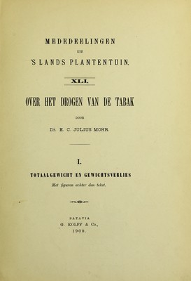 Over het drogen van de tabak. 1, Totaalgewicht en gewichtsverlies / door E.C. Julius Mohr.