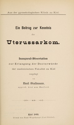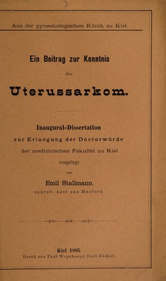 Ein Beitrag zur Kenntnis des Uterussarkom ... / vorgelegt von Emil Stallmann.