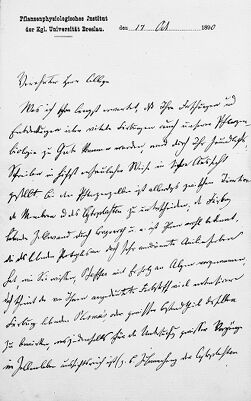 Credit: M0013343: Page of letter from Ferdinand Cohn to Paul Ehrlich. Source: Wellcome Collection.