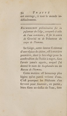 Traité de la construction théorique et pratique du scaphandre ou du bateau de l'homme ... approuvé par l'Academie Royale des Sciences / par M. de la Chapelle.