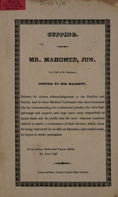 Credit: Shampooing; or, benefits resulting from the use of the Indian medicated vapour bath ... containing a brief but comprehensive view of the effects produced by the use of the warm bath, in comparison with steam or vapour bathing ... To which is subjoined an alphabetical list of names ... in testimony of the ... general approval of the Indian method of shampooing / [Sake Dene Mahomed]. Source: Wellcome Collection.