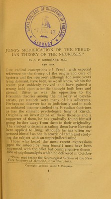 Jung's modification of the Freudian theory of the neuroses / by S.P. Goodhart.