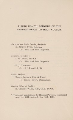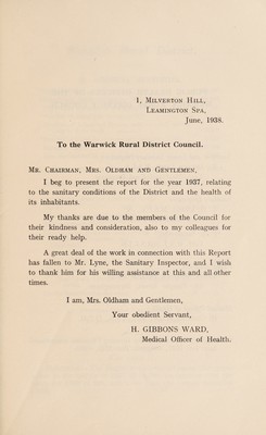 Credit: [Report 1937] / Medical Officer of Health, Warwick R.D.C. Source: Wellcome Collection.