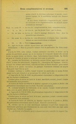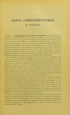 ![fant do sa mère et de la placer dans un établissement hydrotb.érapique spécial. C'est alors que je me rencontre avec X... qui considère la fillette comme une hystérique latente. Ce diagnostic ne me semble pas moins hypothétique que celui do coxalgie qui l'avait précédé. Examen. — état local. — L'enfant est couchée ; le membre inférieur fléchi moyennement, cuisse sur le bassin, jambe sur la cuisse. Au niveau du genou existent trois points douloureux, disposés en triangle. On ne peut y toucher, môme légèrement, sans que l'enfant se plaigne. De ces points partent de temps à autre des crises de souffrances que N... qualifie d'aura. La jambe est toujours froiile. Etat généiîal. — Aspect un peu cliétif. Pas de menstruation; mais l'enfant présente de temps en temps quelques-uns des troubles réflexes communs à l'époque de la puberté. Je suis frappé de la vaso-constriction permanente du membre malade et de l'influence indéniable du froid sur l'afl'eetion (Voyez plus haut). Je le suis également du défaut de menstruation et de la manifestation intermittente de congestions qui au lieu de se concentrer sur l'abdomen,pour aboutirau raptus sanguin physiologique, ne font qu'une fugace apparition, et sont déviées vers tel ou tel point de l'organisme. A cette époque je n'avais pas fait mes expériences, ma théorie des troubles vaso-moteurs erratiques n'existait point, et je ne son- geais pointa rechercher les faits démonstratifs, c'est-à-dire l'exacerbation delà douleur et de la flexion du membre inférieur, au moment de molimens abdominaux éphémères et presque nuls ; mais la logique me fit admettre une relation possible entre l'absence de menstruation et l'indéfinissable état pathologique au sujet duquel j'étais consulté. En conséquence je déclarai à la famille que si cette relation existait je guéri- rais l'enfant en la réglant. Si au contraire l'hystérie était le point de départ des accidents, j'échouerais ou tout au moins n'obtiendrais pas de guérison durable. Le traitement consistant en gymnastique congestionnante du pelvis et en un massage court et très léger des quatre membres, sans jamais toucher aux points douloureux du genou, est institué à la fin de décembre 1893. On porte l'enfant chez moi, jusqu'au jour où elle peut poser le pied par terre. Dès le premier mois un molimen abdominal très net fait apparition Huit jours plus lard le sang coule. Au mois de mars l'enfant cesse le traitement. Elle marche et cette guérison se maintient comme la menstruation. La dernière fois que je l'ai vue, elle était au bal [Novembre 1896]. Ce cas présente une analogie d'origine non douteuse avec un autre, également soigné par moi et dans lequel le point de départ fut encore une douleur localisée au membre inférieur, survenue encore à la suite de ce qu'on appelle faux mouve- ment; mais la maladie installée et prise pour affection hystérique progressa lentement et sûrement défiant toute thérapeutique. A l'impotence succéda l'atro- phie. Le massage du ventre sans gymnastique — car celle-ci était impossible — fil alors son œuvre dynamogénique. Après cinq mois de traitement la malade asseyait, ci' qu'elle n'avait pu faire depuis neuf nus, et à la fin de la même sai- son- elle marchait sur des béquilles. Ce succès, qui date del893, ne se dément poinl : au contraire, sous l'influence d'un traitement annuel de trois mois suivi](https://iiif.wellcomecollection.org/image/b20391389_0630.jp2/full/800%2C/0/default.jpg)