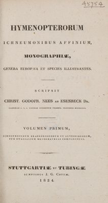 Hymenopterorum ichneumonibus affinium, monographiæ, genera Europæa et species illustrantes / Scripsit Christ. Godofr. Nees ab Esenbeck.