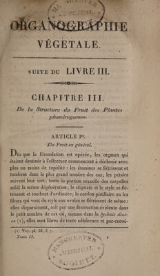 Organographie végétale, ou description raisonnée des organes des plantes. Pour servir de suite et de développement a la Théorie élémentaire de la botanique, et d'introduction a la physiologie végétale et a la description des familles ... / [Augustin Pyramus de Candolle].