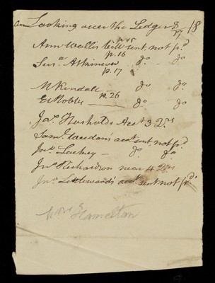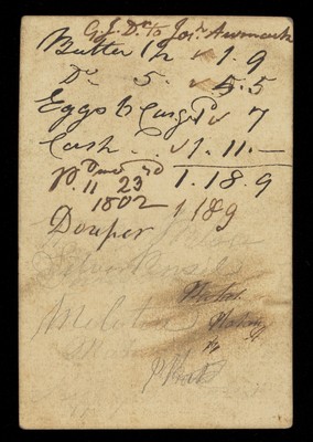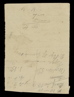 Credit: Scraps of accounts, including patients' accounts, sums, an old 1811 accounts wrapper which is a re-used Leyburn auctioneers bond, doodles etc. Source: Wellcome Collection.