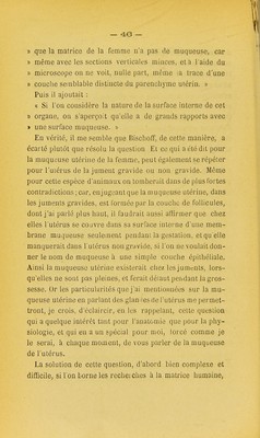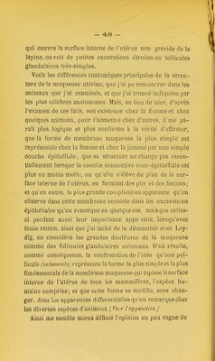 Mémoire sur les glandes utriculaires de l'utérus et sur l'organe glandulaire de néoformation qui se développe pendant la grossesse dans l'utérus des femelles des mammifères et de l'espèce humaine / par G.B. Ercolani ; ... suivi d'un appendice inédit de l'auteur avec atlas de X planches gravées par Bettini ; traduit de l'italien par E. Bruch et R. Andreini. [Texte].