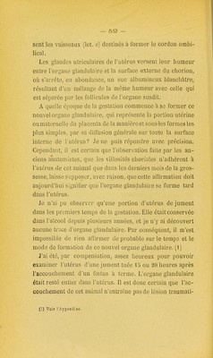 Mémoire sur les glandes utriculaires de l'utérus et sur l'organe glandulaire de néoformation qui se développe pendant la grossesse dans l'utérus des femelles des mammifères et de l'espèce humaine / par G.B. Ercolani ; ... suivi d'un appendice inédit de l'auteur avec atlas de X planches gravées par Bettini ; traduit de l'italien par E. Bruch et R. Andreini. [Texte].