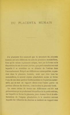 Mémoire sur les glandes utriculaires de l'utérus et sur l'organe glandulaire de néoformation qui se développe pendant la grossesse dans l'utérus des femelles des mammifères et de l'espèce humaine / par G.B. Ercolani ; ... suivi d'un appendice inédit de l'auteur avec atlas de X planches gravées par Bettini ; traduit de l'italien par E. Bruch et R. Andreini. [Texte].
