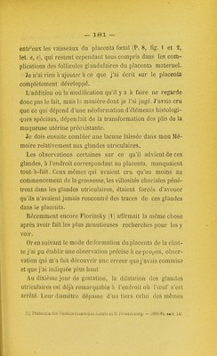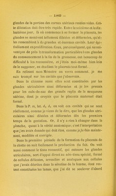 Mémoire sur les glandes utriculaires de l'utérus et sur l'organe glandulaire de néoformation qui se développe pendant la grossesse dans l'utérus des femelles des mammifères et de l'espèce humaine / par G.B. Ercolani ; ... suivi d'un appendice inédit de l'auteur avec atlas de X planches gravées par Bettini ; traduit de l'italien par E. Bruch et R. Andreini. [Texte].