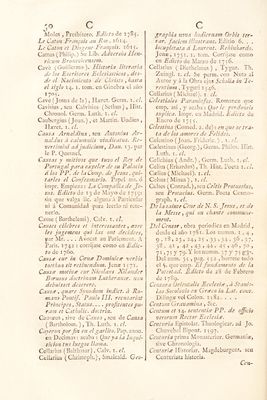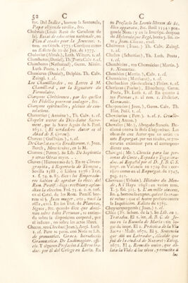 ![tor. Del Indice , bórrese la Sentencia, Pap^e eligendo viriiia , &c. Chaiotais (Louis Rene de Caradcuc de la). Essai de ediication nationale , ou Plan d'etudes pour la Jeunesse. i. tona, en Gincb. 1773 ; Corríjase como en Edicto de 20 de Jun. de 1777. Chalovius (Abrala.), Luth. WitciTi. i. el. Chanabutus (Daniel), Th.Toeta Cal v. i. el. Chambutns (Nathanael) , Gema. Mlnist, Luth. Poeta, i. el. Chamicrus (Daniel), Delphin. Th. Calv. Zuiiagl. I. el. Les Chamillardes , ou Letres a M. ChamilLird , sur la Slgnatiire dii Tormiilaire. Chaiifons Chrctiennes , par les quelles les Fidelles pourront soulager , &:c. Changons spirituelles , pleines de con- solations. Chanorrier ( Antoine ) , Tía. Calv. i. el. Chapelet secret du P'rcs-Samt Sacre- ment, par la Sí«ur Agnes de S. Paul. 1632. ( El verdadero Autor es el Abad de S. Crran). Charcus ( Guillieiin.) , i. el. De Charlatancria Eruditorwn. f. Joan. Burda, ]\íenekcnius , en la M. Cltarron (Petrus). Su Lib¿ De Sapieníia y otras Obras suyas. . . Chaves ( Hieronymo de). En su Chrono- grapiña , 6 Repertorio de Tiempos , Sevilla 1588 , ó Lisboa 1576 : Trat. I. f. 74. n. 83. dice : los Emperado- res habian de aprobar la elecc. del Rom. Pontif.; diga : recibiany aplau- dían la elección. Fol. 75. c. 2. n. 106. en el Catal. de los Rom. Pontif. bór- dese el §. Juan muger , asta , vacó la silla , excl. En los Trat. de Planetas, Signos , &c. quando dice que domi- nan sobre tales Personas , se entien- da sobre la disposición corporal, por el inñuxo , no sobre los actos libres. Checus, seuCheckusjom.),Axugl. Luth I. el. Pero se perm. con Nota su Lib. de pronuntiat, Grícea. Iníroductio Grammatiere. De Lndimagistr. ojfi- cio. Y dí^xxvíos Prefacios d Libros tra- duc\ por él del Griego en Latlii, Evi Su Prefacio In Leojtis lihrum de he^ Ilico apparata, &c. Basil i)' 3 4 : pón- gasele Nota : y en la Inscripc. después de Hy bernia que Regi^ borra 3. lin. as- ta , Joan. Checits. excl. Cheironus (Isaac. ) Th. Calv. ZuiimL I. el. ChcIIus (Sebastian) , Th. Luth. Poeta, I. el. Chembiclus, seu Chcmnicius (Martin.). f. Xemnetus. Chemisius (Martin.), Calv. i. el. Chemnicius (Matthseus), \. el. Cherbachius (Godeschale.) Pililos, i. el. Cherlc rus ( Paulus) , Eisterburg, Gerni„ Poeta, Ih. Luth, i. el. En quanto á i sus Poemas , y. el íom. 2. Ddiciar. Germanic. Cherponsius ( Joan. ) , Germ. Calv. Th. Kist. Poli!. I. el. Chevalerius ( Petr.). i. el, y. CeVétlle- rius ( Antón.) Cheralier (Mr.), Abogado francés. De- clamo contra la Bula Unigenítus. Las obras de este Autor que no están en este Expurgat. por sus títulos, se pro- cuí'arán examinar para el correspon- diente uso. Chevigni ( Mr.y Ciencia para las per- sonas de Corte , Espada y Toga: tra- duc. ai Español por el D. J. B. C. S. iinpr. en Valencia en 1729 &c : cor- rijase como en el Expurgat. de 1747? pag. 25T. Chevreau (Urbain). Histoire du Mon- de , A r Haye 1698 : en varios tora. T. 3. fol. 315. C D an mille sixeenty lin. 4. bórrese la expres. quiest ¡a crau- té 7néme : que el Autor proñerecontra Ja Inquisición. Edicto de 1785. Cheyserspergensis ( Joan.) i. el. Chica (Fr. Sebast. de la). Su Lib. en 5. Tratados. El i. int. A. B. C. de Je- sús en la Escuela de María : sin lu- gar de impr. El 2. Practica déla Via Sacra ; Madr. 1671. El 3. Sentencia que dio un Labrador , Alcalde que fui de la ciudad de Nazaret: Zarag. 1671. El 4. Rente dio único , que di- lata la Vida dios vivos ,y resucita á](https://iiif.wellcomecollection.org/image/b28776586_0102.jp2/full/800%2C/0/default.jpg)