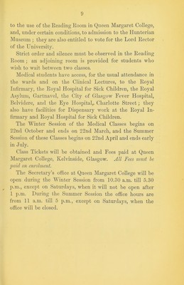 Credit: Prospectus for session 1894-95 / University of Glasgow, Queen margaret College, School of Medicine for Women. Source: Wellcome Collection.