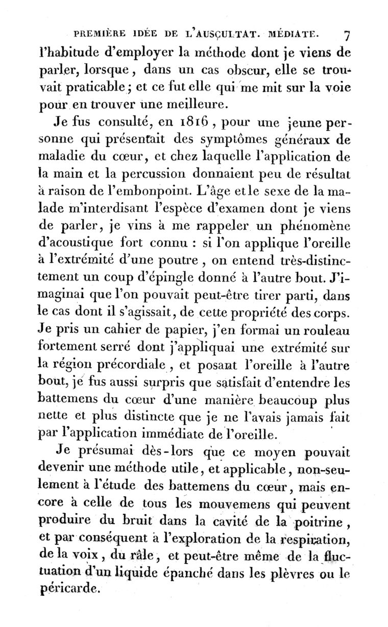 M0019005EA: Laennec's account of the invention of his stethoscope: first page. Public Domain Mark. Source: Wellcome Collection.