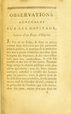 Observations générales sur les hopitaux, suivies d'un projet d'hopital / par M. Iberti, docteur en médecine. Avec des plans détaillés, rédigés & dessinés par M. Delannoy.