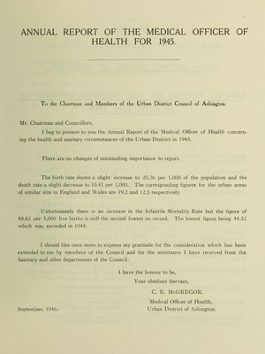 Credit: [Report 1945] / Medical Officer of Health, Ashington U.D.C. Source: Wellcome Collection.