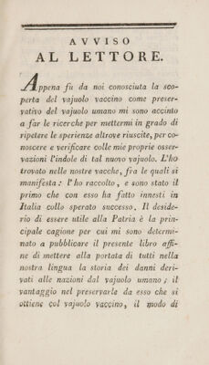 Credit: Osservazioni pratiche sull' uso del vajuolo vaccino : come preservativo del vajuolo umano. Source: Wellcome Collection.