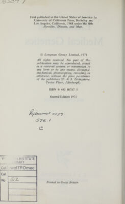 Credit: Elements of medical genetics / Alan E.H. Emery. Source: Wellcome Collection.