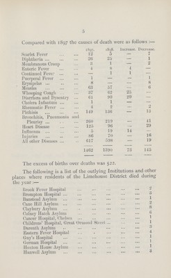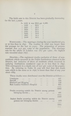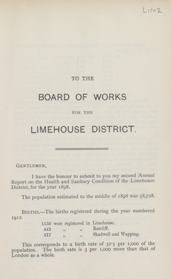 Report on the sanitary condition of the Limehouse District (comprising the Parishes of Limehouse, Shadwell, and Wapping, and the Hamlet of Ratcliff) for the year 1898.
