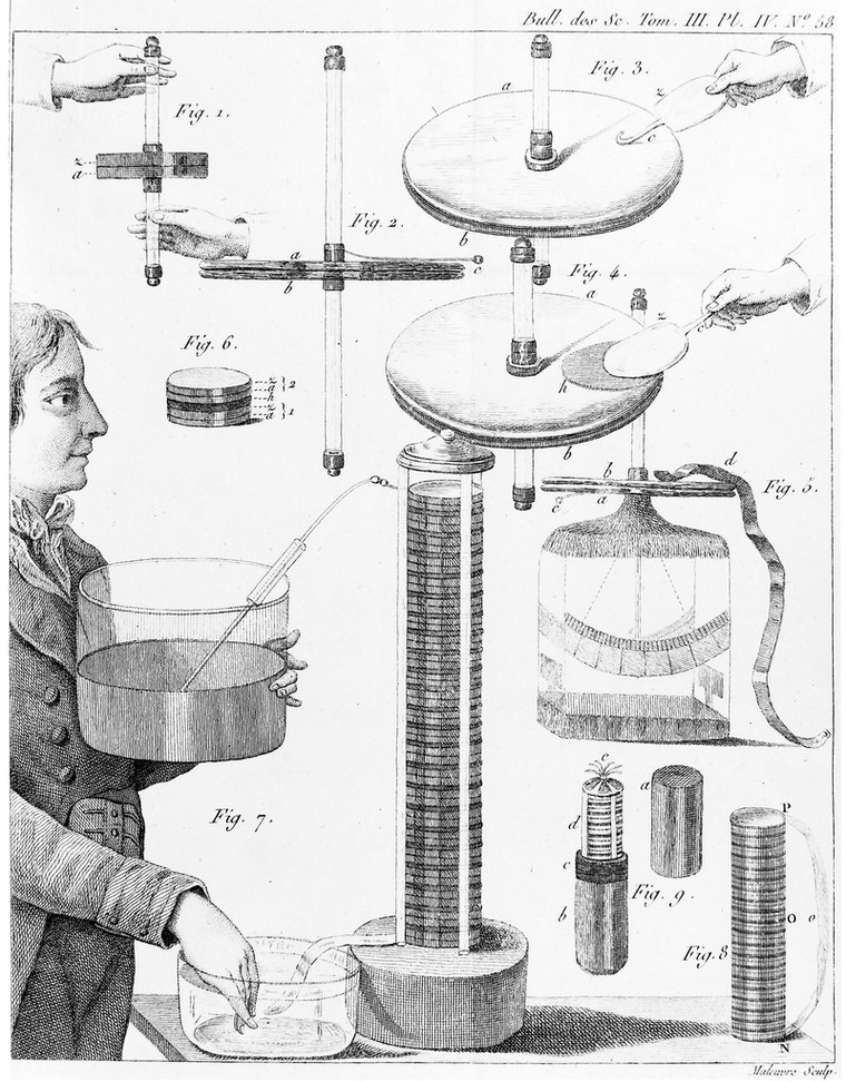 M0014548: The charging of an electrophorus by means of the voltaic pile. Public Domain Mark. Source: Wellcome Collection.