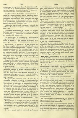 ![produites par un coup ou une chute. [V. Cathétérismë {Ac- cidents du)]. Il se produit quelquefois des déchirures de l'urèlhre en arrière des rétrécissements. V. RÉTRÉCISSE- MENTS DE l'urèthre et Infiltration d'urine. Les plaies contuses de l'urèthre peuvent porter sur la totalité du calibre de l'urèthre qui est alors divisé longi- tudinalement et quelquefois transversalement. Elles s'ac- compagnent d'hémorrhagies moins abondantes que dans les plaies régulières par instruments tranchants ; mais il y a des épanchements sanguins autour de la plaie qui pro- duisent rapidement la rétention d'urine. L'infdtration urineuse est la conséquence habituelle des déchirures de l'urèthre occupant la portion membraneuse de ce canal. On reconnaît les déchirures de l'urèthre à la sortie de l'urine par la plaie au moment de la miction, et, lorsqu'il n'y a pas de plaie, à l'hémorrhagie par l'urèthre en dehors des moments où le malade urine. Les fausses routes se reconnaissent à un écoulement sanguin immédiatement après le cathétérismë, à une dé- viation de la sonde et à une sensation de déchirure lors- qu'on explore l'urèthre. V. Cathétérismë [Accidents du). Thérapeutique. — Lorsqu'il y a une déchirure de l'urèthre, sans plaie extérieure, on sondera le malade avec une sonde molle munie d'un mandrin. Les sondes à grande courbure sont bonnes. Si l'on se sent arrêté par une dé- chirure, on sondera par des procédés variables et avec des sondes de courbures différentes (V. Cathétérismë); on sondera avec lenteur et l'on s'arrangera de façon à faire suivre au bec de la sonde la partie de la paroi qui semble être intacte. Pour cela on tire la sonde en haut ou on la fait presser en bas. On placera des sangsues au périnée, on donnera des lavements opiacés ou l'on placera le malade dans un grand bain; on détruira les caillots sanguins qui existent dans l'urèthre à l'aide de la sonde ou en pressant sur le canal d'arrière en a\ant. Lorsque le cathétérismë est impossible et lorsqu'il y a une tumeur sanguine au périnée, on incise la tumeur et l'on tente de sonder. Une sonde à demeure peut sou- vent être placée après cette opération (Reybard). Si la sonde ne peut être placée, on aura recours à l'établisse- ment de la boutonnière urétlirale^ comme lorsqu'il y a plaie extérieure. Lorsqu'une plaie extérieure existe, et quand il y a écoulement d'urine par la plaie, il est encore indiqué de passer une sonde à demeure pendant trois jours, puis, les jours suivants, on fait uriner le malade avec la sonde à chaque besoin d'uriner. Si l'on ne peut passer une sonde, on pourra, en faisant uriner le malade, se guider sur le jet de l'urine pour aller à la recherche du bout postérieur de l'urèthre; puis une bougie étant introduite dans la vessie, une autre est passée dans l'urèthre, et l'on se sert de la bougie fdiforme introduite par l'urèthre pour rame- ner dans le canal la bougie dont une partie est engagée dans la vessie; pour cela, on lie ensemble les deux extré- mités des bougies qui passent parla plaie(Gosselin). V. Uré- throtomie. Lorsque l'urine ne passe pas par la plaie, et lorsqu'il y a néanmoins rétrécissement, on peut faire la boutonnière périnéale, inciser au devant de l'anus, comme pour la taille bilatérale, soit en grandissant une plaie, soit en fai- sant une incision en arrière de la plaie. V. Uréthrotomie externe. Si l'on est consulté plusieurs jours après que la plaie a eu lieu, si un rétrécissement ne peut être franchi, on peut, après avoir ponctionné la vessie, faire le cathétérismë, d'arrière en avant, avec une sonde métallique ou une sonde de gomme (Sédillot, Voillemier). La sonde arrivée dans la plaie sert à conduire une sonde dans la vessie, et l'on fait plus tard l'uréthrotomie externe. Si le canal est rendu libre, on y passe une sonde et l'on s'en sert pour conduire une sonde à demeure, passant à la fois dans l'urèthre et dans la vessie. Pour sonder les malades atteints de fausses routes, on se sert d'une sonde droite si la fausse route est sur la partie antérieure, d'une sonde courbe si elle est sur la paroi pos- térieure. Les bougies tortillées (Leroy d'Étiolles) sont d'un bon usage s'il y a rétrécissement. On peut introduire une sonde à olive latérale qui s'en- gage dans la fausse route, et l'on passe, à côté de cette sonde, une bougie fine qui évite ainsi le rétrécissement (Ducamp) ; ou bien on introduit une sonde presque droite, à œil latéral ; on pousse, et lorsque le bec de la sonde s'est engagé dans la fausse route, on passe dans la sonde une bougie munie d'un fil qui, traversant l'œil de la sonde, évite la fausse route (Mercier) : on retire la sonde, ouverte du bout, qui a servi de conducteur. En général, une bougie à boule, conduite par une main habile, suffit pour éviter les fausses routes, à moins qu'elles ne soient très-étendues et que la sonde ne soit engagée fort avant dans une fausse route formant un canal anormal. En tirant fortement sur la verge et en disant au malade de faire effort pour uriner, pendant qu'on in- troduit les bougies, on évite les petites fausses routes. V. Prostate {Hypertrophie de la). URÈTURe: (Rétrécissement de l'). Les rétrécisse- ments de l'urèthre sont dus à une modification de la structure de l'urèthre qui se transforme partiellement en tissu fibreux, soit après une inflammation de l'urèthre, soit après une plaie. Il y a des rétrécissements qui sont dus à des tumeurs qui compriment le canal; enfin il y a des rétrécissements occasionnés par des obstructions de l'urèthre. Le gonflement de l'urèthre pendant une blennorrhagie, le gonflement du col de la vessie pendant une cystite, causent un rétrécissement inflammatoire qui passe avec l'inflammation. V. Uréthrite, Cystite. Il n'y a pas de rétrécissements spasmodiques vrais. Les premiers rétrécissements sont des rétrécissements dits or