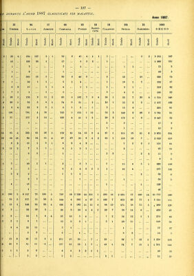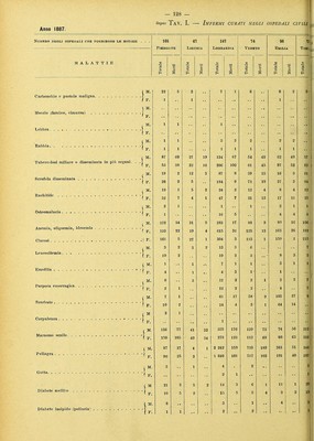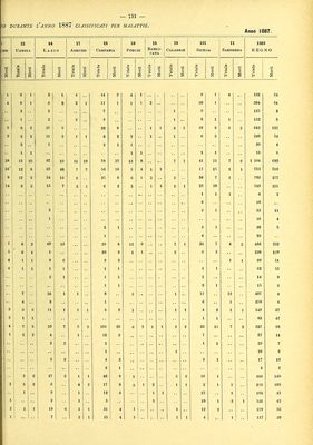 Credit: Cause di morte : statistica analitica per l'anno 1889 e notizie sommarie per l' anno 1890 : movimento degli infermi negli ospedali (1887), nei manicomi e negli ospizi di maternita (1889) / Ministero di Agricoltura, Industria e Commercio. Source: Wellcome Collection.