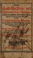 Kurtzes Hand-Büchlein und Experiment vieler Artzneyen durch den gantzen Cörper des Menschens ... Sampt lebendiger Abcontrafacteur etlicher der fürnembsten und gebräuchlichsten Kräuter, und darauss gebrandten distillierten Wassern, Krafft und Tugend / Durch ... D. Apollinarem selbs erfahren und bewehrt. Jetzund von neuem mit vielen Kräutern und Experimenten gemehret und gebessert. Sampt dem Experiment-Büchlein von zwantzig Pestilenz-Wurtzeln des ... Tarquinii Ocyori. Public Domain Mark. Source: Wellcome Collection.