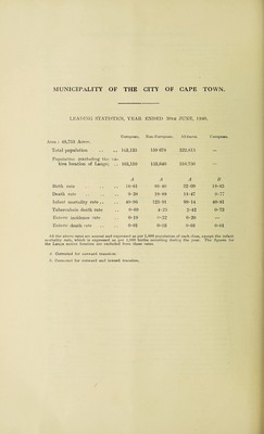 Credit: Annual report of the Medical Officer of Health [to] the Corporation of the City of Capetown. Source: Wellcome Collection.