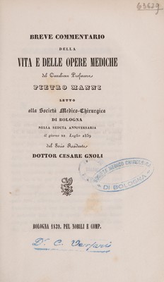 Breve commentario della vita e delle opere mediche del Cavaliere Professore Pietro Manni / [Cesare Gnoli].