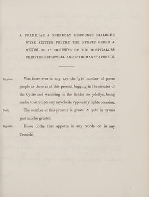 Credit: John Howes' ms., 1582 : being "a brief note of the order and manner of the proceedings in the first erection of" the three royal hospitals of Christ, Bridewell & St. Thomas the Apostle / Reproduced and printed at the charges of Septimus Vaughan Morgan, Esq., a governor of Christ's Hospital ; with introduction and notes by William Lempriere. Source: Wellcome Collection.